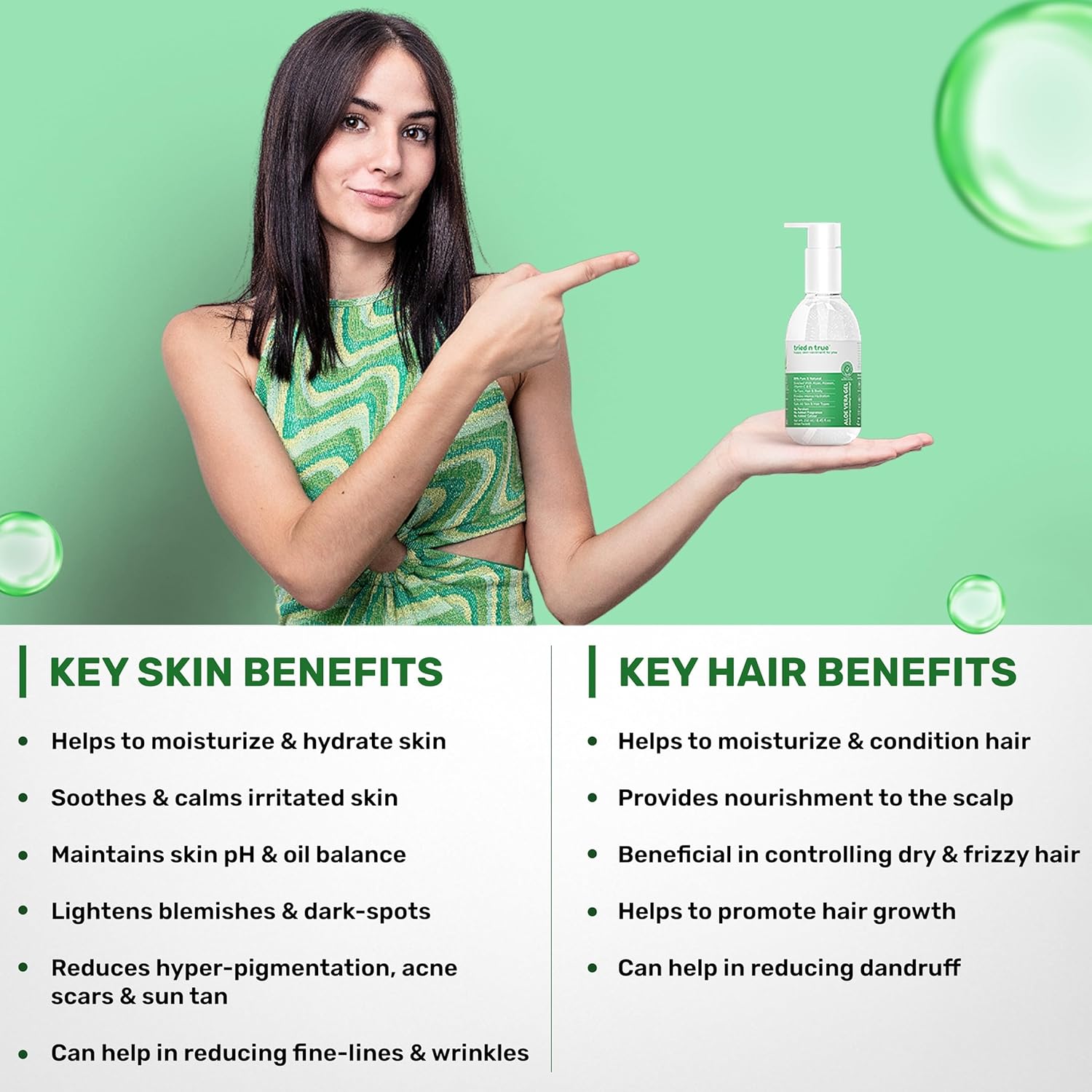 - THE SUPER LEAF: Aloe Vera leaf is naturally enriched with Aloin, Aloesin, Vitamin C, Vitamin E, Minerals and Antioxidants which makes it beneficial for skincare and haircare. It is also considered as multi-purpose gel due to its versatile applications.