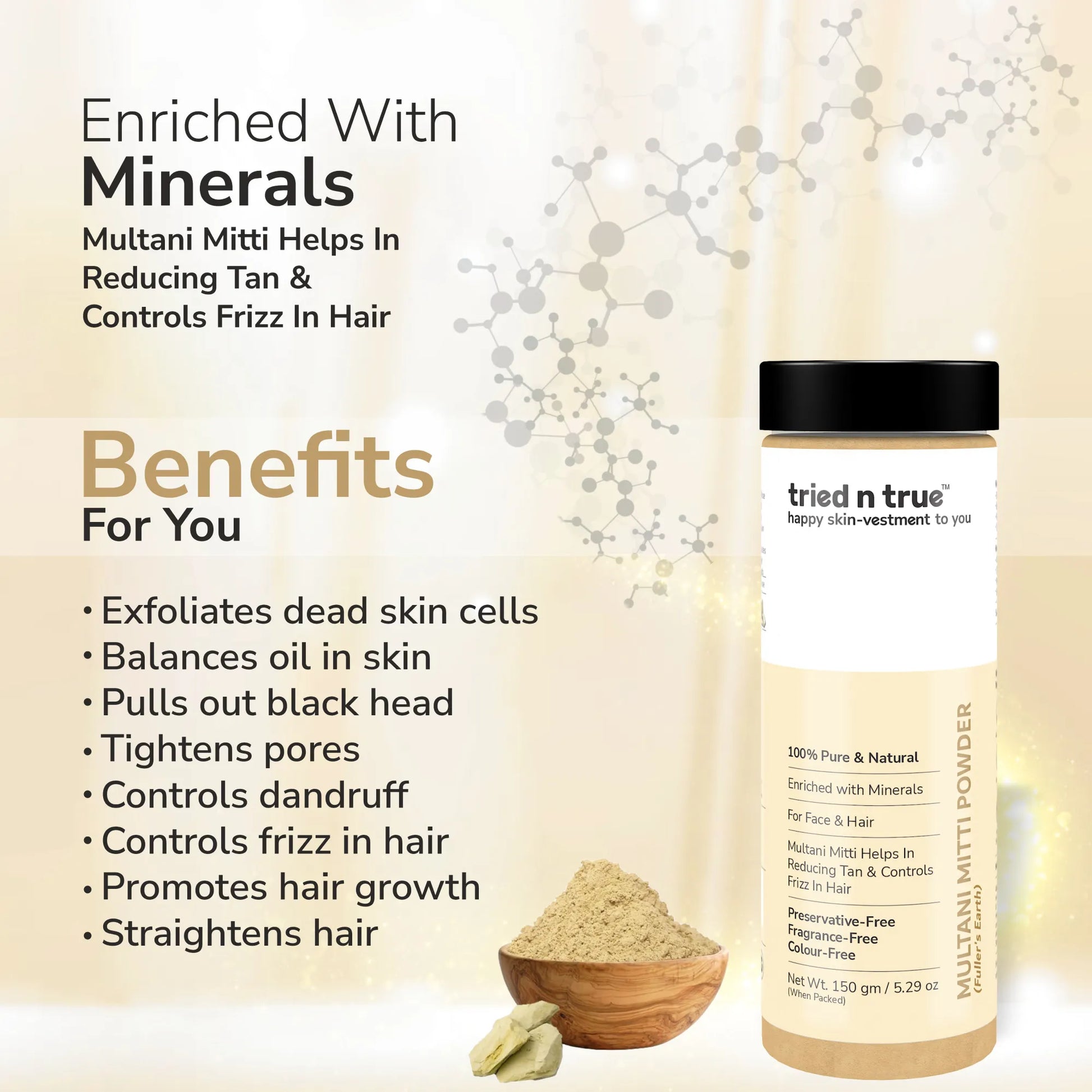 - Tried and True Pure Aloe Vera Gel is the perfect combination of nature and science, crafted from pure Aloe barbadensis leaf juice. Complementing this is Multani Mitti Powder, a 100% pure and natural product also known as Fuller's Earth. This mineral-rich clay, which includes Bentonite Clay, is celebrated for its exceptional cleansing properties.