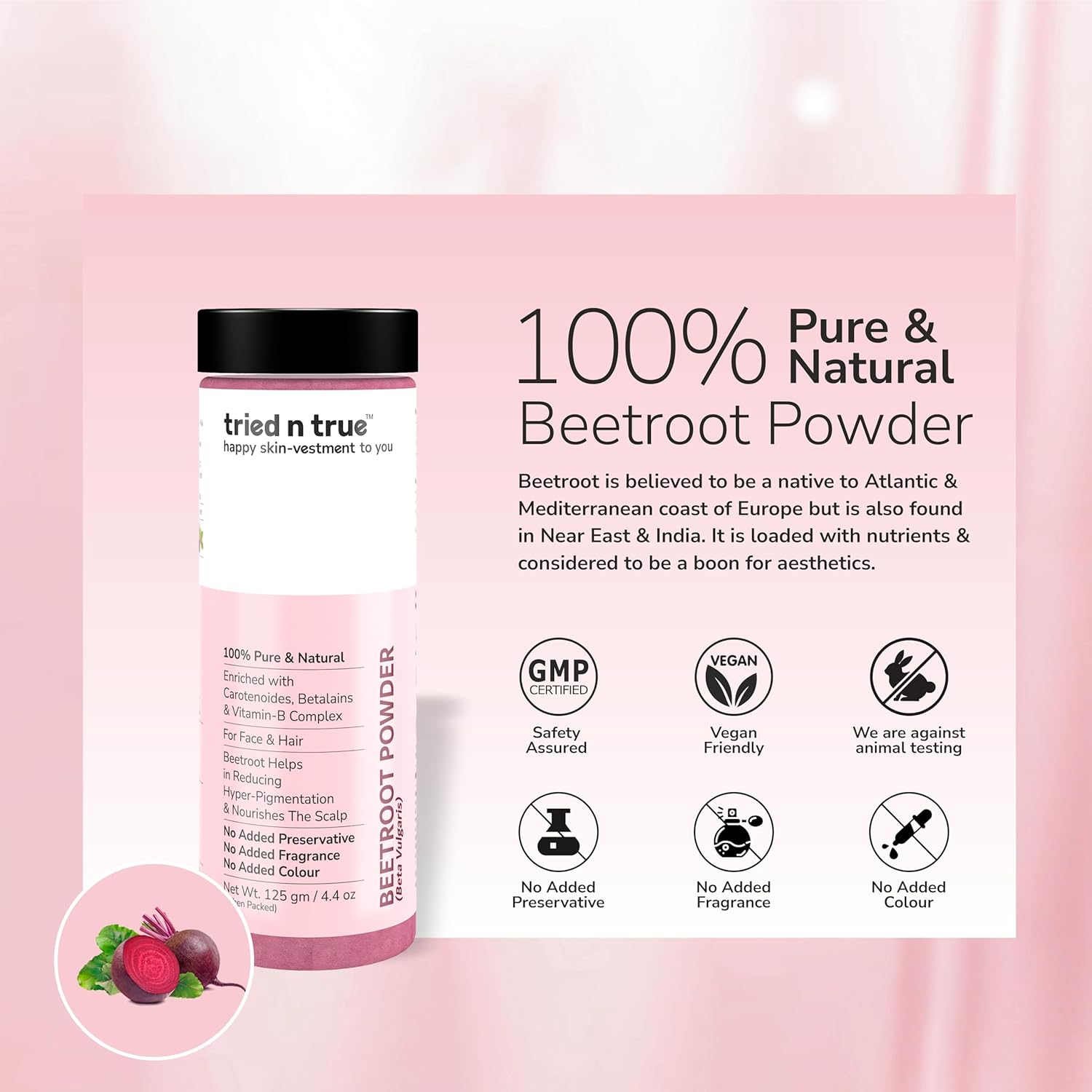 - tried n true Beetroot Powder is a 100% Pure and Natural Powder. It is also known as Beta Vulgaris. Beetroot is considered to be a boon for aesthetics