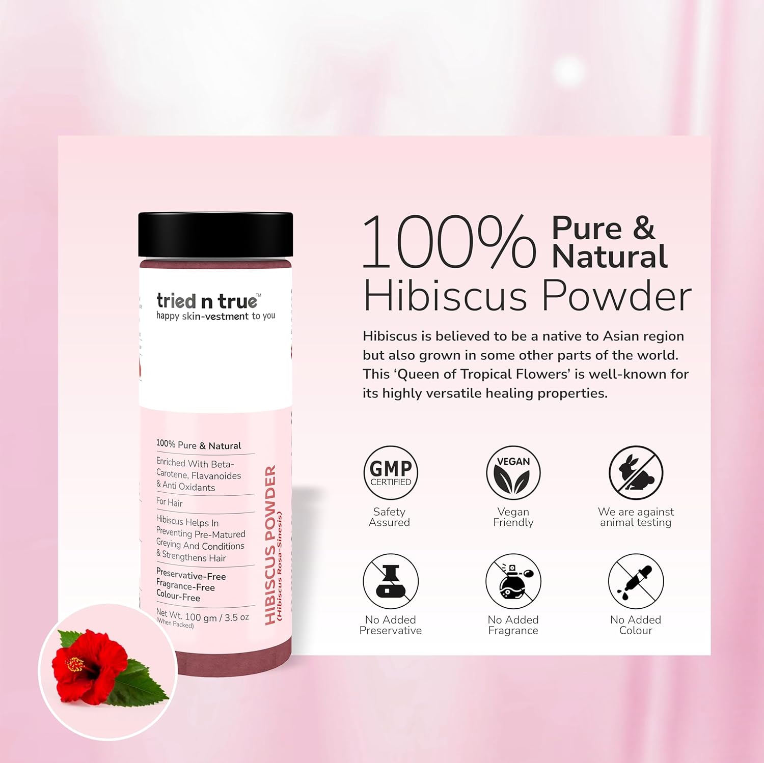 - tried n true Hibiscus Powder is a 100% Pure and Natural Powder. It is also known as Hibiscus Rosa-Sinesis and popularly known as Queen of Tropical Flowers with a highly versatile healing properties