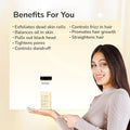 - Apart from controlling frizz in hair, it cleanses and conditions hair as well as purifies scalp