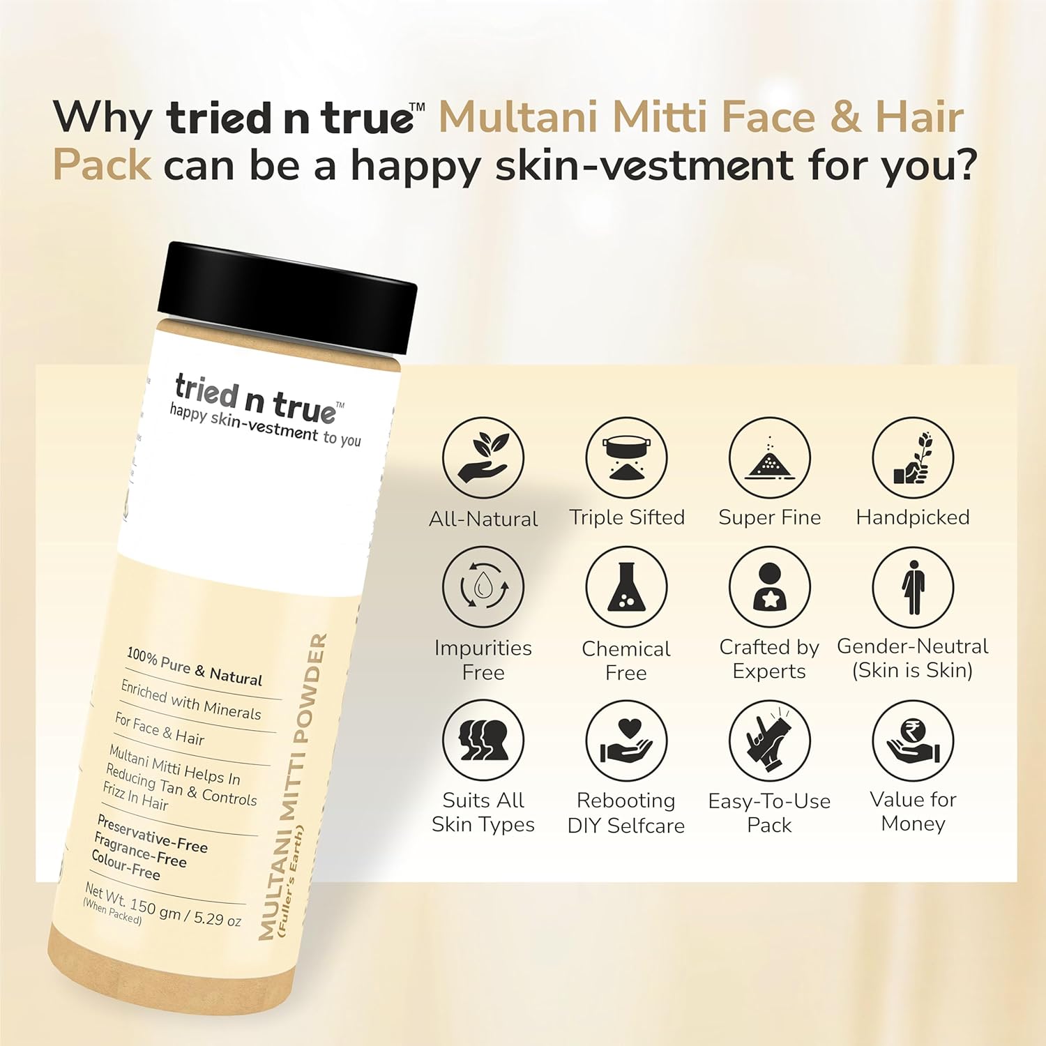 - tried n true Multani Mitti Powder is a 100% Pure and Natural Powder. It is also known as Fullers Earth and Bentonite Clay which is a non-plastic mineral-rich clay with high-class cleansing properties