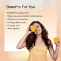 - It brightens skin tone, reduces pigmentation and blemishes, carries anti-acne properties, removes fine lines and wrinkles (anti-ageing), unclogs skin pores and purifies skin
