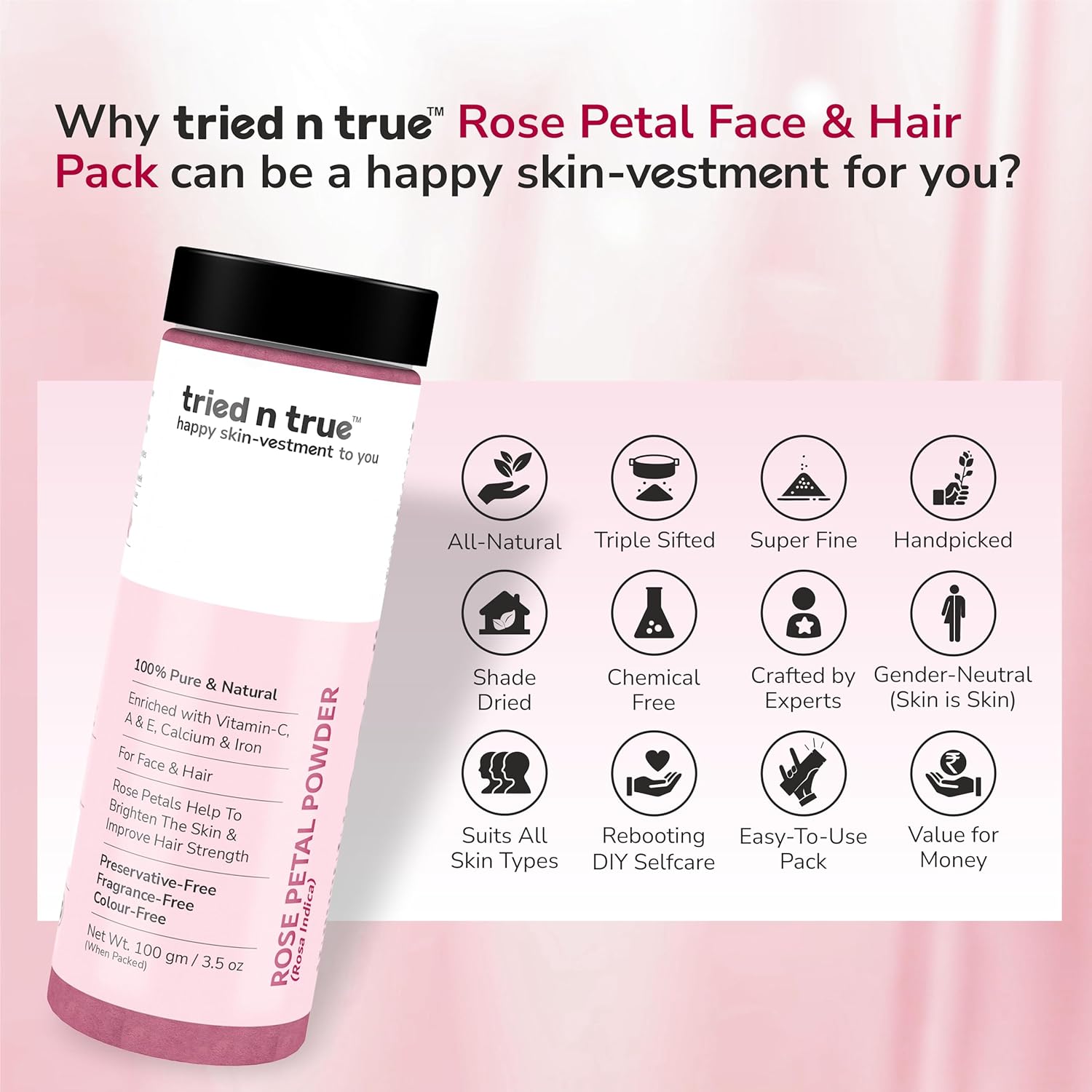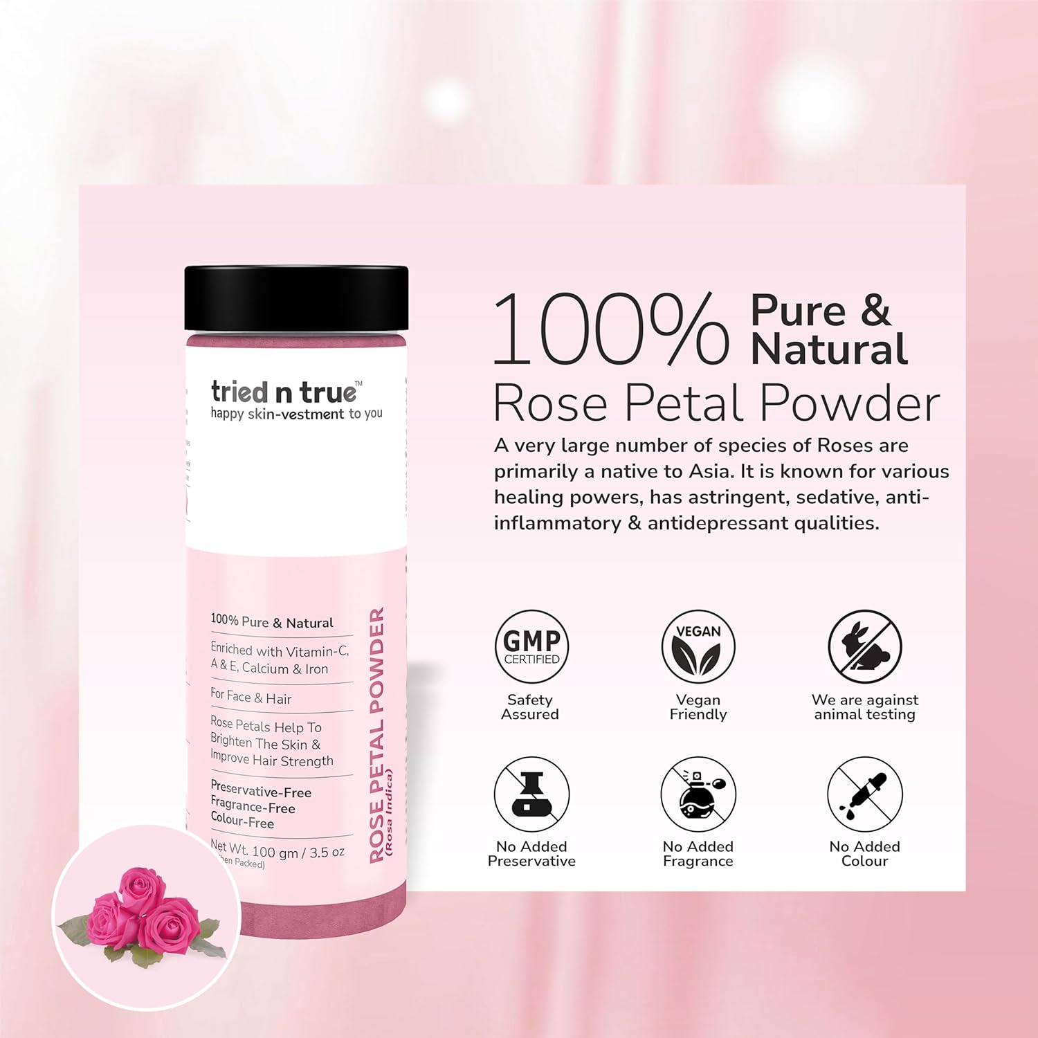 - tried n true Rose Petal Powder is a 100% Pure and Natural Powder. It is also known as Rosa Indica and has natural healing powers, astringent, sedative, anti-inflammatory and antidepressant qualities
