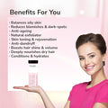 - Helps in skin brightening and toning, balancing oily skin, removing fine lines and wrinkles (anti-ageing), reducing blemishes and dark spots
