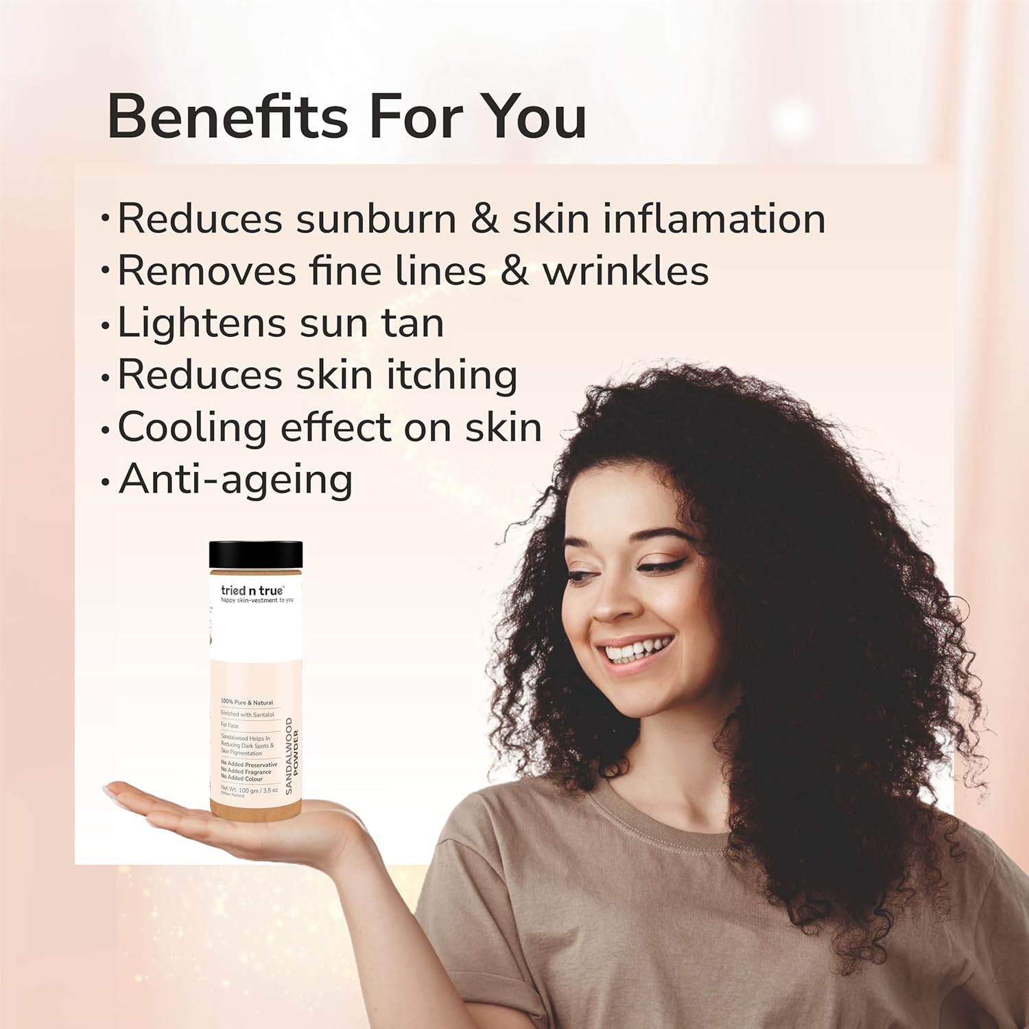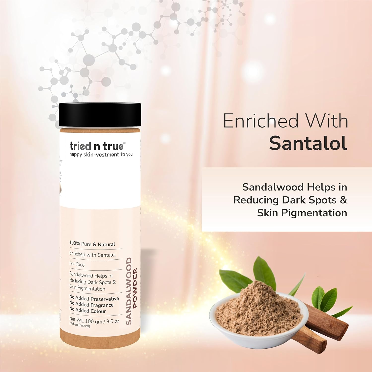 - tried n true Sandalwood Powder is a 100% Pure and Natural Powder. It is sourced from indian sandalwood tree (Santalum Album)