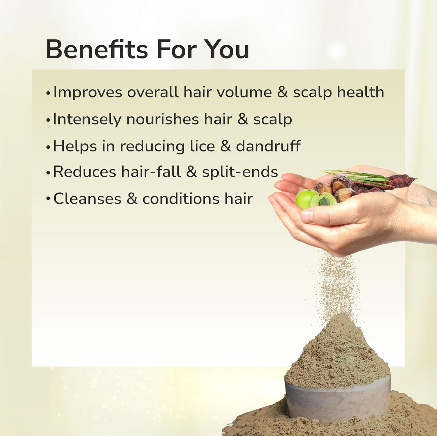 - This chemical-free hair pack naturally cleanses, conditions and nourishes hair and scalp by reducing hair-fall and split ends